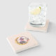 The coasters are gorgeous, a quality feel and heavy weight. They look like a precious archeological find. A rustic stone juxtaposed with a modern floral black and white print. I like the way the print goes slightly imperfect on the cut stone edges giving them a kind-of natural beauty.