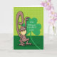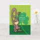 Wish your son a shamrock full of luck on St. Patrick's Day! A cute monkey is showing you just how high that luck really is!