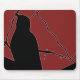 Song Bird Black Silhouette on Maroon Mouse Pad