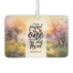 Air freshener with inspirational quote scripture depicts a beautiful nature background including a meadow surrounded by trees. It features a beloved Bible Verse from Song of Solomon 3:4, "I have found the one whom my soul loves."