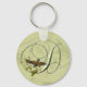 Very fancy, elegant Initial D in pale green metal, decorated with a songbird sitting on a branch with white blooms. A perfect design for birdlovers.
