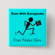 Funny Sonographer Name Badge pin, customisable. Stickman running with sonogram, "Runs With Sonogram". Add name to the bottom OR REMOVE WORDING.