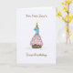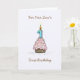 Son's first birthday cupcake and candle card. This original artwork baby boy card has a cupcake loaded with frosting and sprinkles and a big number one candle on top. Text on the front reads, "For our Son's first birthday". The inside has a happy saying that can be changed or deleted.