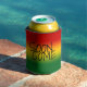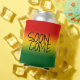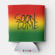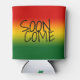 The famous three-toned stripe colours synonymous with Jamaican culture creates the perfect background for the all-caps Jamaican phrase, SOON COME.