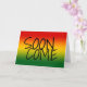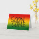 The famous three-toned stripe colours synonymous with Jamaican culture creates the perfect background for the all-caps Jamaican phrase, SOON COME.
