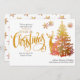 Elegant Gold and White Christmas Card which doubles as your holiday pregnancy announcement. The design features a Christmas Tree and woodland deer, snowflakes and hand lettering. The pregnancy annoucement wording reads "the best gifts don't come under the tree, wishing you a Magical Christmas from our soon to be family of three". You can add your custom text to the front, for example your sign off and names; baby's name and due date. The card has a snowflake pattern on the back. Please browse our store for more designs.