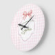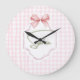 Sophia Personalized Pink Bow & Gingham Print Large Clock