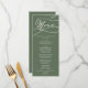 This refined sage green wedding menu from the Sophia Collection features sweeping calligraphy in crisp white. Elegant yet outdoorsy — it's ideal for garden, vineyard, or woodland weddings with a natural, romantic feel.