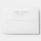 This wedding envelope features a minimalist and elegant design with a light beige background. The layout is centered, showcasing a serif font for the names and address, creating a classic and sophisticated look. The muted gold or tan color palette adds subtle contrast, enhancing the refined mood of the design. With clean lines and ample negative space, this envelope exudes timelessness and grace, perfect for formal occasions. Its understated style makes it ideal for couples seeking a polished and modern aesthetic.