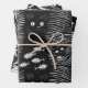 Sophisticated black cat flat line design wrapping paper sheet