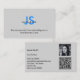 Sophisticated Blue Initials QR-code Black & Grey Business Card