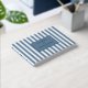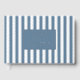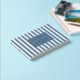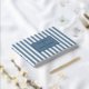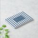 This wedding guest book features a classic nautical theme with vertical stripes in two shades of blue, creating a crisp and elegant look. The design includes a central navy rectangle that highlights customisable text in a clean, modern sans-serif font, perfect for personalising the occasion. The minimalist style emphasizes simplicity and sophistication, making it ideal for weddings or formal events. The calming blue tones evoke reliability and serenity, while the structured layout adds an air of precision and order.