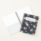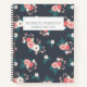 A notebook for wedding and event professionals, with inner pages that are half blank half line - perfect for sketching out client concepts and writing notes. The design features a dark grey background overlain with a pattern of hand drawn pink roses bouquets. Personalise by adding your business details.