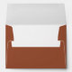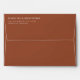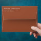 This wedding envelope features a minimalist design with a rich brown background and elegant white text, creating a sophisticated contrast. The layout is clean and centred, emphasizing clarity and simplicity with ample negative space around the text blocks. Utilising classic serif typography in uppercase, it conveys a formal yet approachable tone, perfect for official announcements or invitations. Customisable placeholders allow personalisation for names and addresses, making it ideal for weddings or significant life events.
