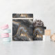 This elegant wrapping paper features a sophisticated abstract design with swirling patterns in shades of dark gray, black, and metallic gold. The luxurious gold accents create a striking contrast against the deep tones, evoking a sense of mystery and richness. Perfect for special occasions, this modern and chic paper adds a touch of drama to any gift, making it ideal for those who appreciate contemporary artistry and refined aesthetics.