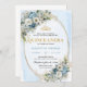 Sophisticated Dusty Blue Gold Greenery Quince Invitation