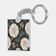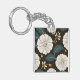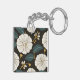 Sophisticated Floral Pattern with White Blossoms Key Ring