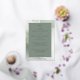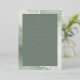 This elegant wedding invitation features a sophisticated marbled background in muted green and white tones, creating a serene and modern aesthetic. The design is centred around a deep forest green text block with classic serif typography that adds timeless charm. The layout emphasizes clarity and balance, making it perfect for formal celebrations. Its understated elegance conveys a mood of tranquillity and celebration, ideal for couples seeking a refined touch for their special day.