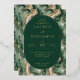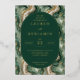 This elegant wedding invitation features a sophisticated marbled background in shades of deep green, gold, and cream, creating a luxurious feel. The central oval frame highlights customisable text with classic serif fonts, emphasizing the event details while maintaining symmetry and balance. Gold accents add a touch of elegance, enhancing the formal and timeless aesthetic perfect for celebrating a joyous occasion. Ideal for those seeking a refined and opulent design to mark their special day.