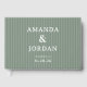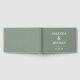 This wedding guest book features a sophisticated design with vertical stripes in varying shades of green, creating a subtle and calming texture. The layout is clean and modern, with elegant serif typography for the names and a simpler sans-serif font for additional details, ensuring readability and focus on key information. The minimalist aesthetic conveys an air of understated charm, making it perfect for formal occasions like weddings. Its customisable elements allow you to personalise it effortlessly, capturing the essence of your special day.