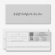 The back of the card is thoughtfully organised with customisable text fields and frame, all presented in shades of light grey. The layout is designed to be both functional and stylish, offering space in the lower half of the card for a personalised pre-printed company message or a handwritten note from the giver.