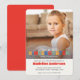 Stylishly elegant Kindergarten graduation party invitation. Large central photo with superimposed header of mixed coloured letters. Modern minimalist typography and composition. Sophisticated and youthful. Terrific keepsake invitation to celebrate a spectacular step in one's educational journey.