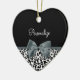 Personalise by adding the name of any girly girl to this sophisticated black and white leopard print heart-shaped ornament with an elegant ribbon tied into a classy feminine bow. This stylish animal print design is a flat printed image, and does not contain actual ribbon.