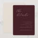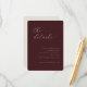 This elegant wedding enclosure card features a deep maroon background with light cream cursive and serif typography, creating a sophisticated and inviting look. The design is minimalistic, focusing on the essential details without any additional graphics or motifs, making it perfect for conveying important information clearly. The generous spacing and classic color palette enhance readability and add to the formal atmosphere, ideal for weddings. Its modern yet understated style ensures that it complements any wedding theme while maintaining a sense of refinement and clarity.