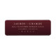 This return address label features a sophisticated, minimalist design with a deep maroon background and soft cream text. The layout is clean and centred, utilising elegant serif typography for a timeless look. Perfect for formal events or invitations, the design emphasizes clarity and refinement, making it ideal for those seeking a classic yet modern aesthetic.