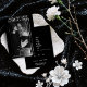 This wedding Save the Date card combines sophistication and modernity, featuring a black and white design enhanced with real metallic silver foil details on the front. The balanced and refined composition, creates a harmonious and timeless visual effect that conveys luxury, style, and anticipation for the celebration.