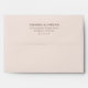 This wedding envelope features a minimalist and elegant design with a muted brown colour palette, creating a warm and sophisticated tone. The layout is simple yet refined, showcasing centred uppercase serif typography for the names and address, which are customisable placeholders. The clean lines and balanced spacing emphasize clarity and formality, making it perfect for weddings or formal invitations. Its understated style conveys timeless elegance, ideal for those who appreciate simplicity and sophistication in their stationery.