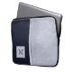 A sophisticated navy blue monogram 13 inch laptop sleeve with an image of a stylish contemporary silver feather. Personalise this modern masculine case by adding your monogrammed initial. Flat printed image, no embossing or texture applied. Original Art copyright of ©Tracie Kaska