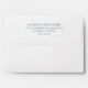 This wedding envelope features a minimalist design with a clean, white background and a deep navy blue colour palette. The layout is simple and elegant, utilising ample negative space to emphasize the centred text elements. The typography combines a bold serif font for the names with a smaller sans-serif font for the address, creating a sophisticated and modern look. Perfect for couples seeking understated elegance, this design conveys a sense of formality and tradition while maintaining a contemporary feel.