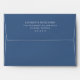 This wedding envelope features a minimalist design with a solid navy blue background and crisp white text, creating an elegant contrast. The layout is simple and symmetrical, emphasizing clarity and sophistication through clean lines and ample negative space. Utilizing modern sans-serif typography, the design focuses entirely on textual content without additional decorative elements, conveying formality and refinement. Perfect for couples seeking a contemporary and understated aesthetic, this envelope efficiently communicates essential information while maintaining a sophisticated visual tone.