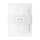 This wedding invitation belly band features a minimalist design with a clean white background and a navy blue square frame. Inside the frame, two uppercase letters "L" and "B" are separated by a vertical line, creating a symmetrical and balanced look. The modern sans-serif typography adds to its sleek and sophisticated style, making it perfect for an elegant wedding celebration. The simple yet striking colour palette enhances its refined aesthetic, ideal for those who appreciate understated elegance.