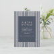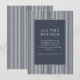This wedding enclosure card features a sophisticated design with vertical stripes in alternating white and dark gray, creating an elegant backdrop. The central navy blue rectangle is bordered by thin white lines, providing a clean frame for the text. Classic serif fonts are used to convey formality, with "ALL THE DETAILS" prominently displayed at the top. The minimalist style focuses on clarity and simplicity, making it perfect for directing guests to additional information about the wedding.