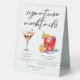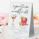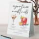 This sophisticated signature mocktails menu table tent sign features 2 elegant non-alcoholic drinks and their ingredients for your party or wedding bar. A Chocolate Martini and non-alcoholic Negroni or Nogroni drawing above your custom event text.