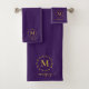 Sophisticated Purple Gold Wreath Monogram Bath Towel Set