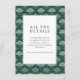 This wedding enclosure card features a sophisticated botanical theme with a dense pattern of stylized leaf motifs in various shades of green on a dark teal background. The central white space, framed by a double-line border, contains elegant serif typography that guides guests to visit the couple's wedding website for more details. The design exudes a calm and natural aesthetic, perfect for adding a touch of elegance to your wedding stationery suite.