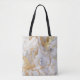 This stunning tote bag features a luxurious white and gold marble effect design. The intricate details and patterns of the marble with splashes of gold, give this tote bag an elegant and sophisticated look that is perfect for any fashion-forward individual. Make a statement with this luxurious gold and white marble effect tote. The stunning design is sure to turn heads and the spacious interior provides plenty of room for all your essentials. Perfect for adding a touch of sophistication to any outfit.