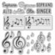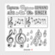 Stick out with these music themed vinyl stickers. Includes soprano and alto stickers in three different fonts (six total), one sticker that reads "singer", two music note soprano and alto singer stickers, two styles of treble clefs (large and small), and two styles of music notes (large and small). 24 stickers total. Excellent for laptops, phones, lockers, notebooks (music folders!), or anywhere else you can think of!