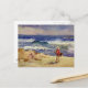 Sorolla - Boy on the Sand postcard. Impressionism painting by Joaquin Sorolla of a boy in a red shirt at the beach.