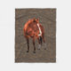 A beautiful sorrel-coloured ranch horse with a western-look tooled-leather effect background, makes a great theme on a cuddly comfy fleece blanket. Just perfect for any horse-lover!
