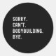 Sorry Can't Bodybuilding Bye - Weightlifting Muscl Classic Round Sticker