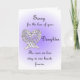 This card features a white and purple gradient background with angel wings in the shape of a love heart and the wording "Sorry for the loss of your Daughter. The ones we love stay in our hearts forever"
