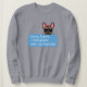 This funny frenchie sweatshirt features a cute brown and tan female french bulldog with a text message that reads "Sorry, I can’t, I have plans with my frenchie.” This cute sweatshirt is also available with different coloured french bulldogs in both male and female designs.