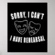 Sorry I Can't I Have Rehearsal Theatre Drama Masks Poster