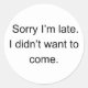 Sorry I'm Late — I Didn't Want to Come | Funny Int Classic Round Sticker