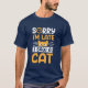 This adorable funny cat quote says Sorry I'm Late I Saw A Cat. There's also a cute orange cat peaking around the text.