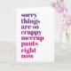 "Sorry things are so crappy mccrap pants right now" greeting card. Perfect empathy card when someone is going through a hard time, divorce, cancer, breakup, etc...